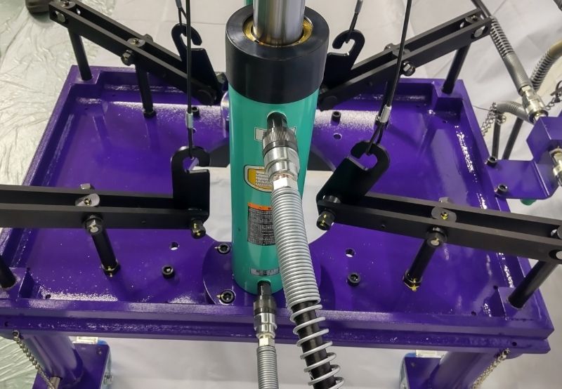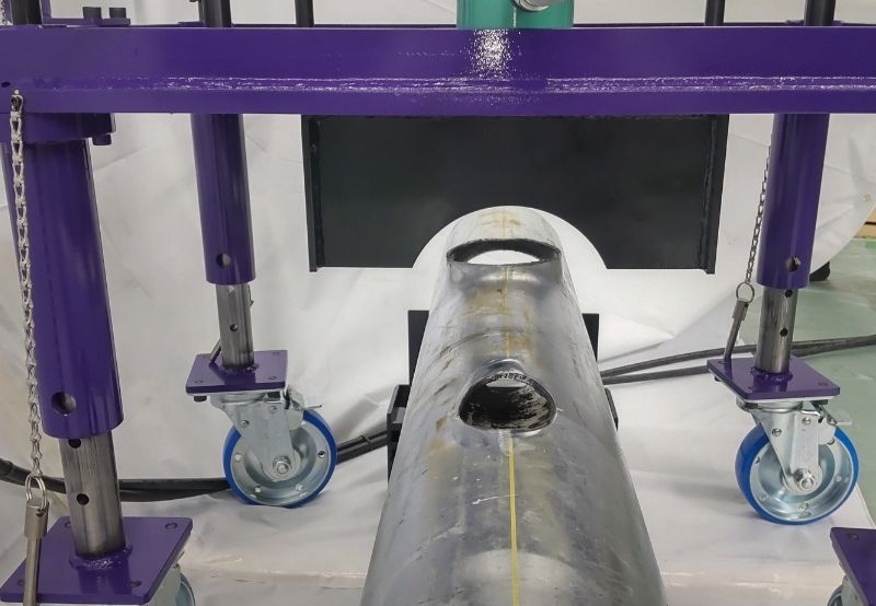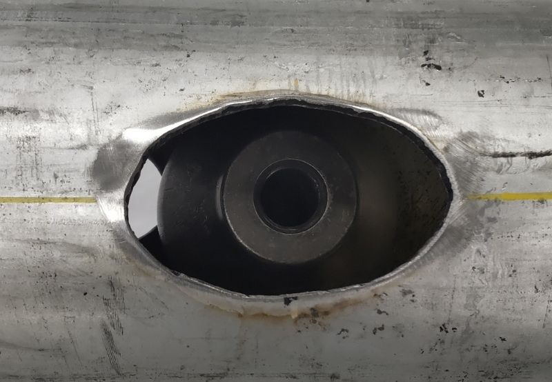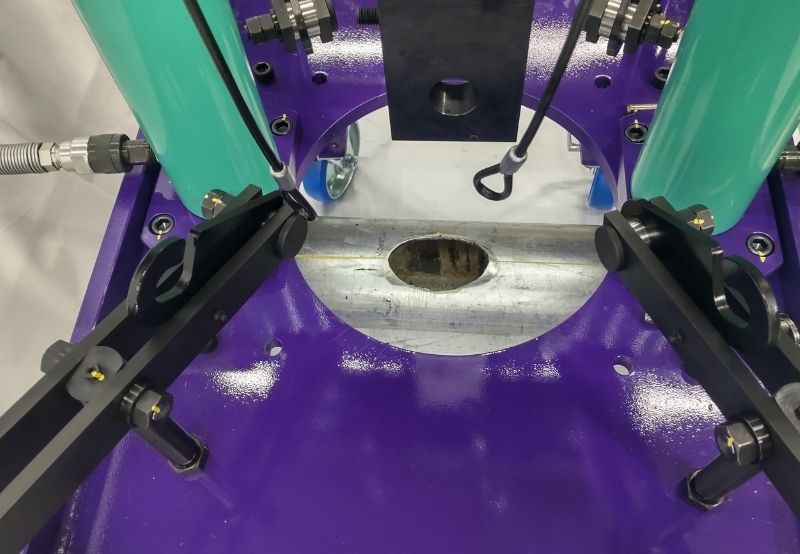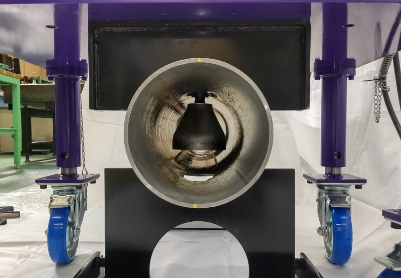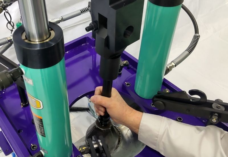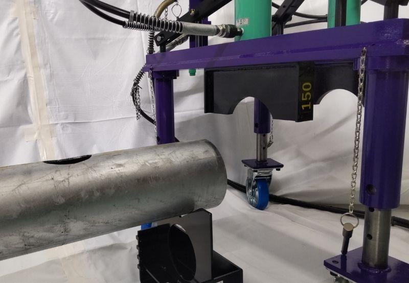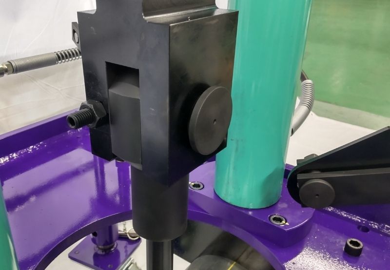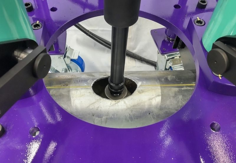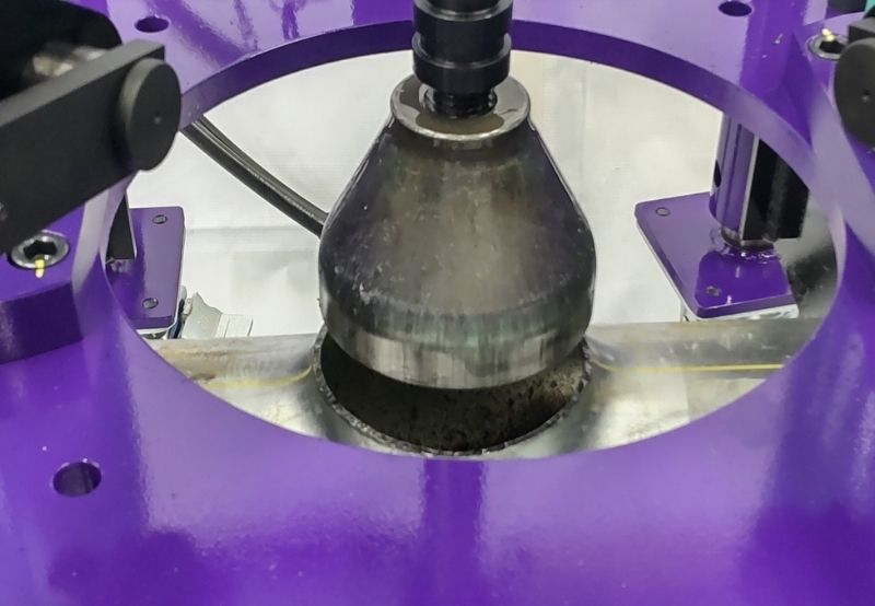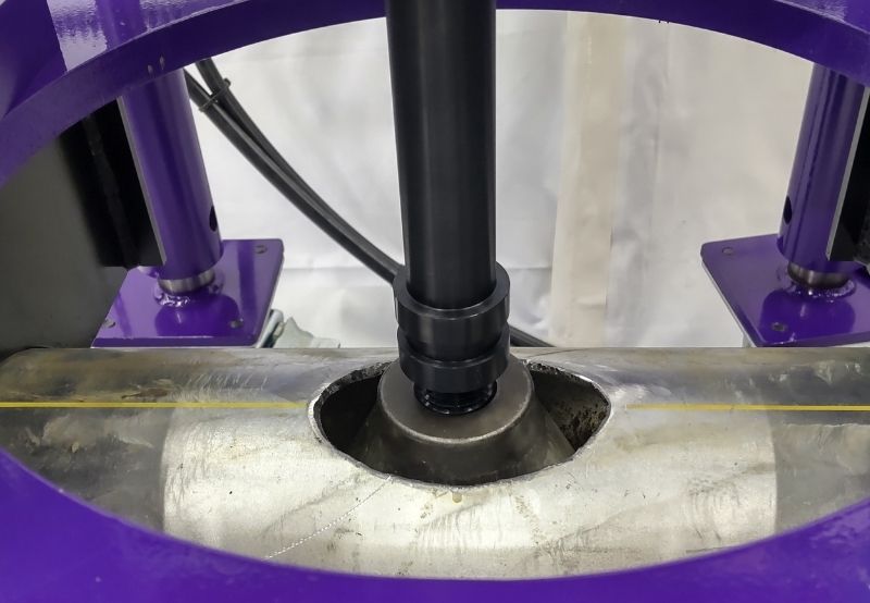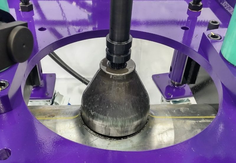 空調やプラントなどに⽤いる鋼管の途中に、異径チーズを溶接することなく枝管を作ることができる配管バーリング加⼯機です。