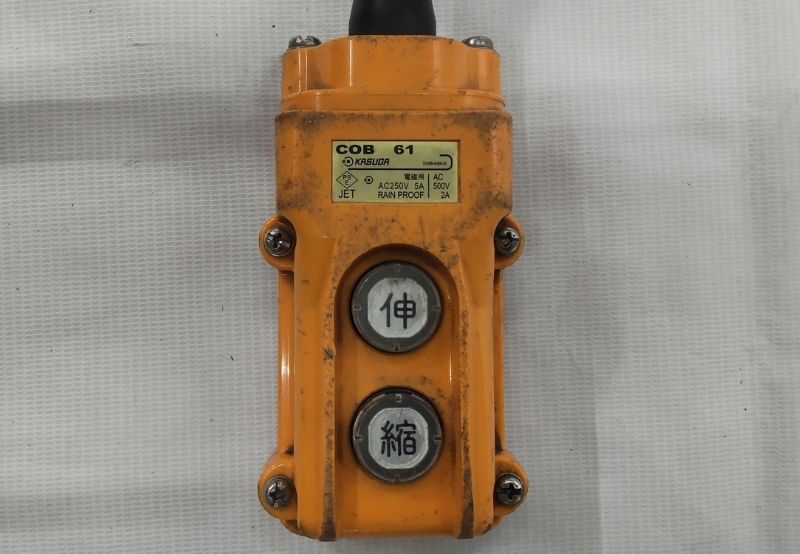 ①手元操作盤の[縮]を押し