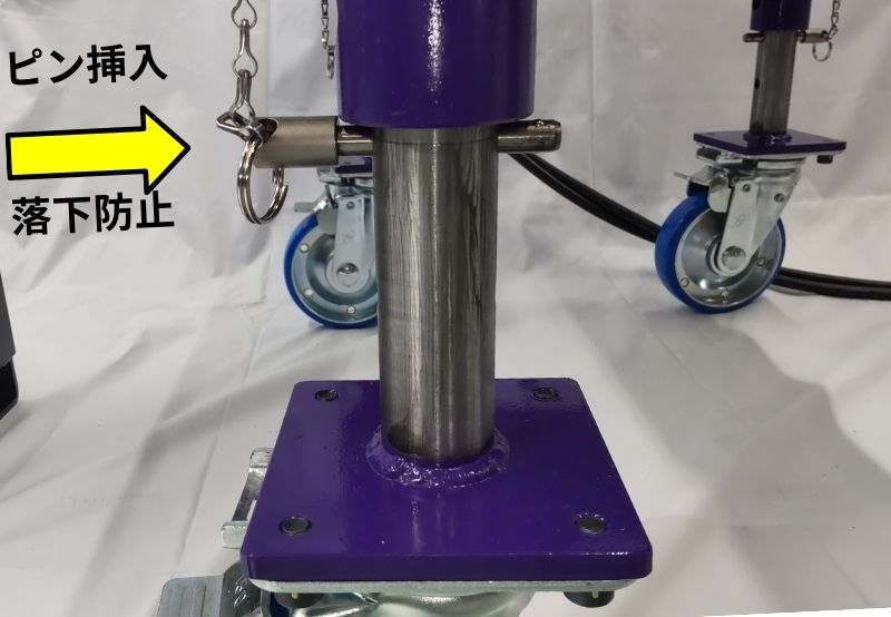 脚ガイド穴にロックピンが差し込まれたままでは、リフトアップできません。
