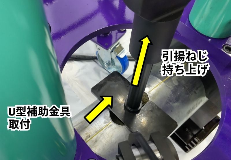 ※U型補助金具を用い抜き玉を持ち上げておく。