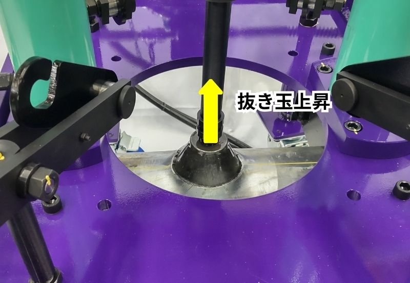 ※抜き玉は、母管に触れる程度上方に持ち上げる。